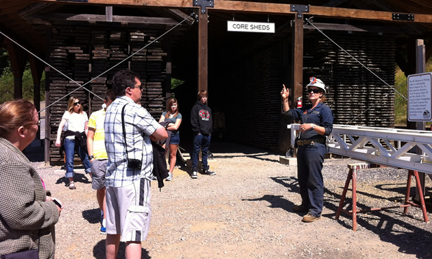 1 of 3The concentrator building is a landmark that can be seen from the Sea-to-Sky Highway. — Kerry Shellborn photo2 of 3A tour group listens to a kno