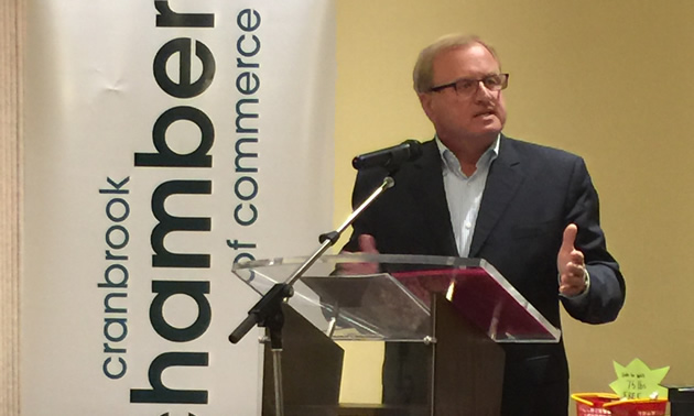 The Hon. Sergio Marchi, president and CEO of the Canadian Electricity Association, spoke with chamber of commerce members, guests and media in Cranbrook, B.C., on October 19, 2016. — G.R. Martin Photography photo